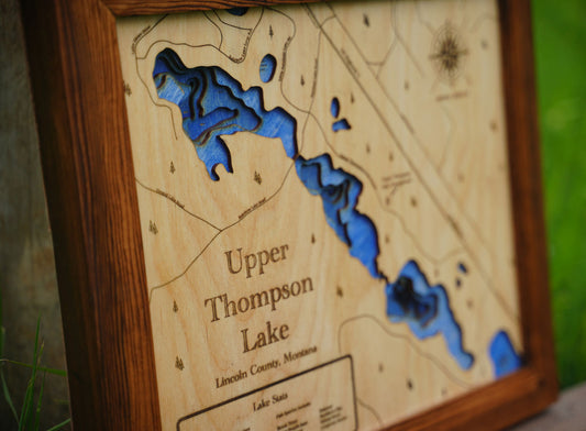Wood Engraved Little Bitterroot Lake Depth Map - Flathead County Montana