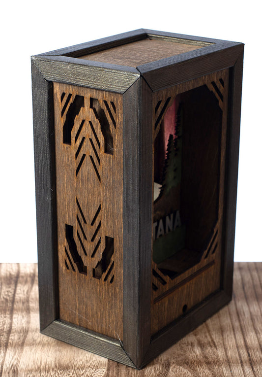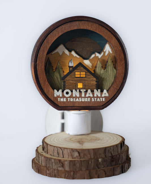 Montana Mountain Cabin - Wood-Carved Night-light