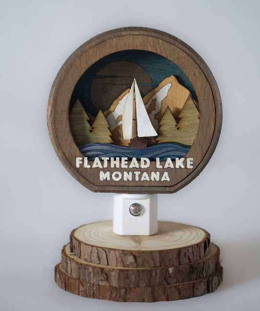 Mountain Lake Sailboat Wood-Carved Night-light
