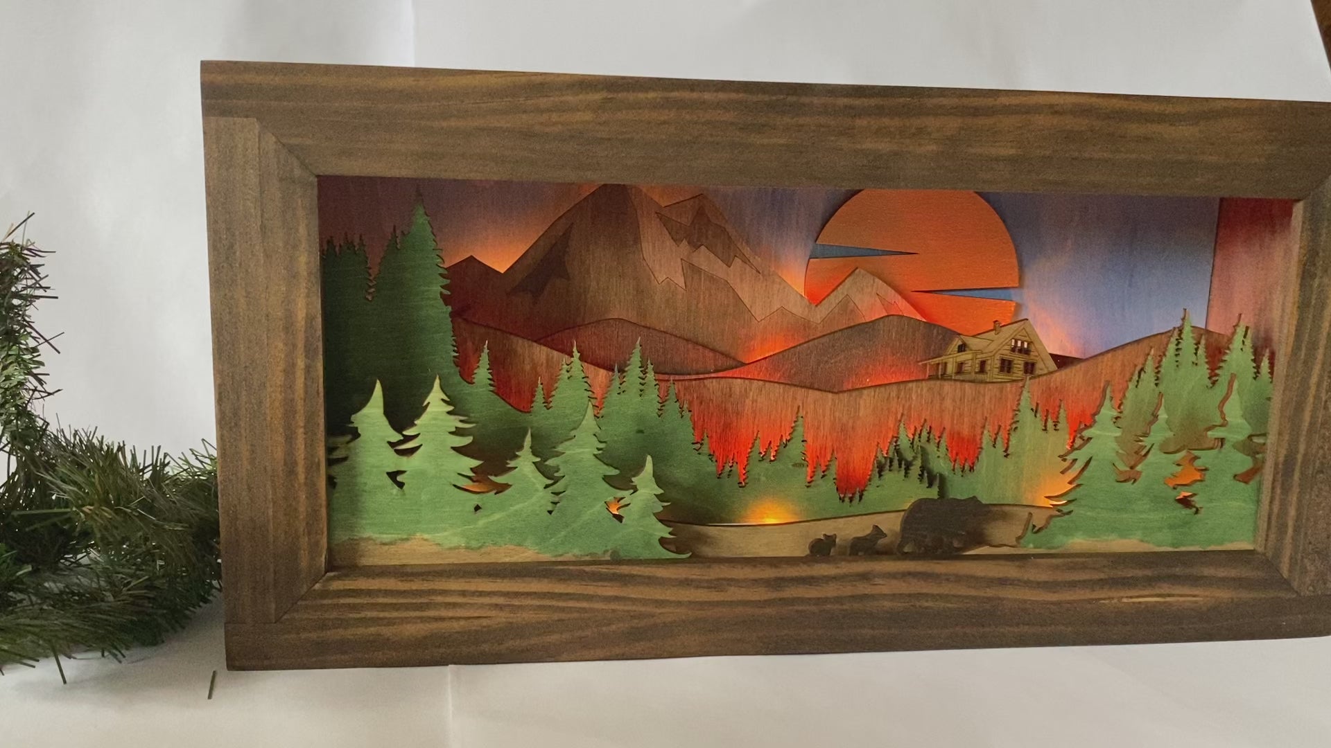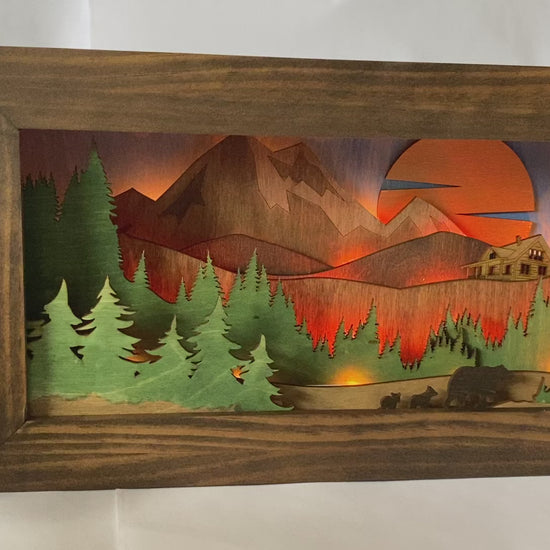 This intricate piece of art brings together 12 layers of meticulously cut wood into one cohesive scene that boasts incredible depth and detail. Each layer of scenery compliments the next creating a harmonious and tranquil scenic composition that is beautiful in any light, and absolutely mesmerizing in the dark as each layer is highlighted by multi-color LED lights which add even more depth to the scene. The LED lights can be set to a variety of colors including three temperatures of white light. You can also select from a number of unique lighting functions and transitions such as a slow fade between colors.